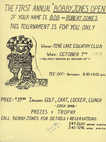 Every year since 1979, Bob Joneses from around the world have gathered to play golf in honor of the "original" Bob. Over 350 Bobs from 38 states and 4 countries have participated in the tournaments. The Bobby Jones Open is committed to providing continuing support for Syringomyelia research, rehabilitation or related subjects in a relentless search for a cure for this crippling disease. As of January 2023, we have raised over $395,000. This includes scholarships and durable equipment for those suffering from Syringomyelia.